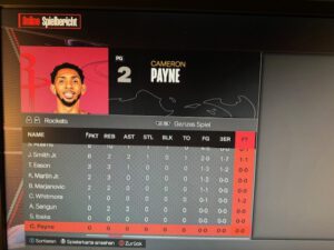| Spieler | PTS | REB | AST | STL | BLK | TO | FGM | FGA | FG% | 3PM | 3PA | 3P% |