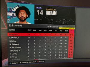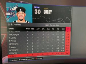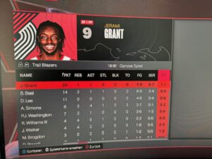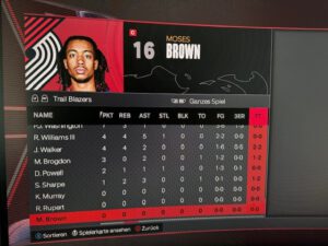 | Spieler | PTS | REB | AST | STL | BLK | TO | FGM | FGA | FG% | 3PM | 3PA | 3P% |