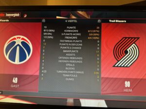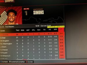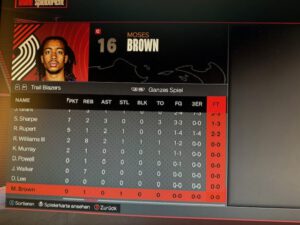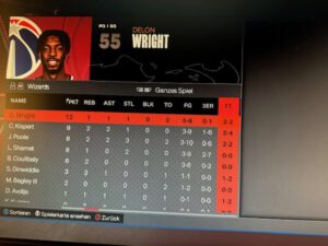 | Spieler | PTS | REB | AST | STL | BLK | TO | FGM | FGA | FG% | 3PM | 3PA | 3P% |