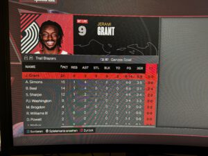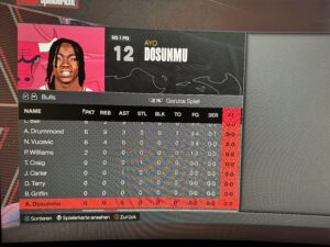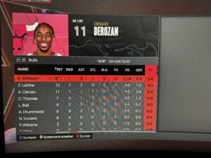 | Spieler | PTS | REB | AST | STL | BLK | TO | FGM | FGA | FG% | 3PM | 3PA | 3P% |